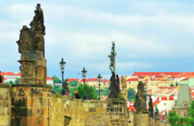 Blick auf Prag, Alstädter Ring, auf Prager Burg und Karlsbrücke
